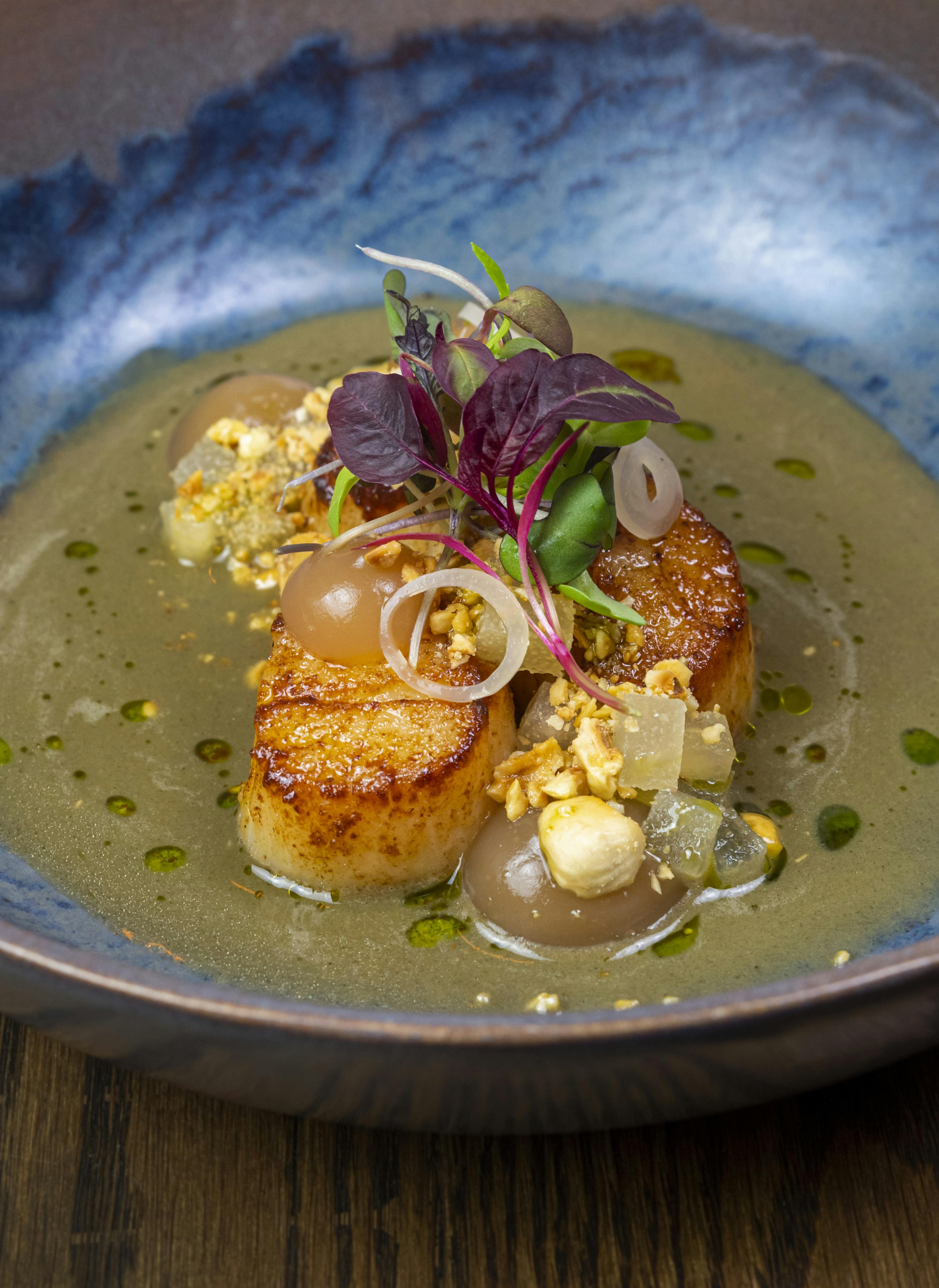 The Scallops, for instance, sit in a layer of grilled lettuce sauce and are paired with pickled ramps from last year’s harvest, a nod to Chef Milo’s interest in preservation and fermentation.